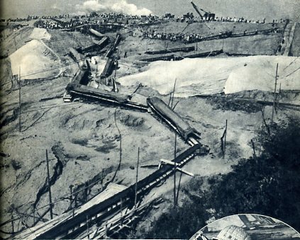 输送带把火车运来的砂石送到拦河坝上。(局部之一)
