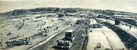 辽宁省浑河的中游正修筑大伙房水库。大伙房水库是我国机械化施工程度最高的水利工程。目前5万劳动大军在不分昼夜地施工,输送带、推土机和运料火车一直轰鸣不停。预计明年水库就可以建成。
