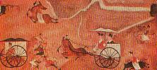(汉)贵人乘驾图(一),1943年郊北园发掘的石椁墓壁画。