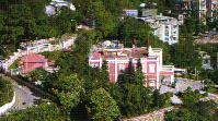 从 Praya Grande 向南眺望,主教山(Penha Hill)在左侧,靠右远处是圣多明各教堂(Church of San Domingo),最右侧是大炮台(Fort Monte)。