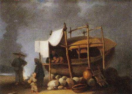油画《濠江渔歌》George Chinnery(1774-1852)香港艺术馆藏。