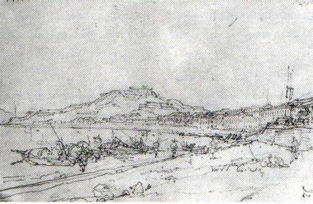 速写《澳门南眺》George Chinnery (17.5x26厘米)19世纪中早期