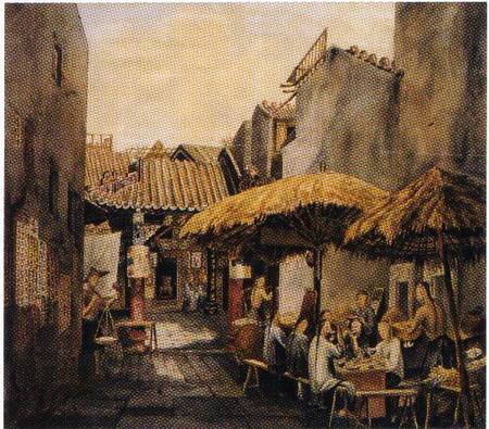 水彩《澳门的小食摊》William Prinsep(1794-1847)(39.5x45厘米)