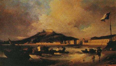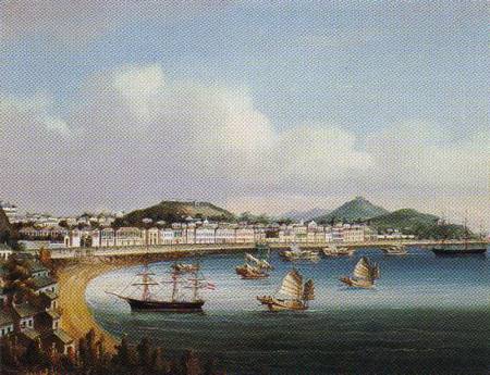 油画《澳门鸟瞰》(44.5x77.5厘米)19世纪中期