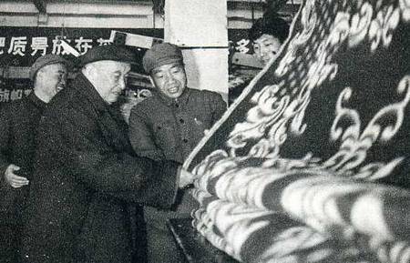 中央代表团副团长、政协全国委员会副主席张冲参观银川毛纺厂。