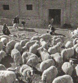 海晏县托勒公社为牧业稳步发展创造条件,建立永久性棚圈。图为社员在棚圈前给羊补饲。(摘自《民族画报》1979年第4期)