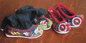 土族女子服饰。土族是一个讲究服饰色彩的民族,以色彩艳丽着称。男女长袍均兼有蒙袍和藏袍的特点,并施以丰富的刺绣。色彩鲜艳明快。被称为“彩虹衣”的五彩袖长袍,从肩至袖口用红、绿、黑、黄、白五种颜色的绸布条镶接而成。红色象征太阳,绿色象征草原,黑色象征土地,黄色象征五谷,白色象征乳汁。现今土族妇女头戴镶有织锦边的翘檐毡帽。