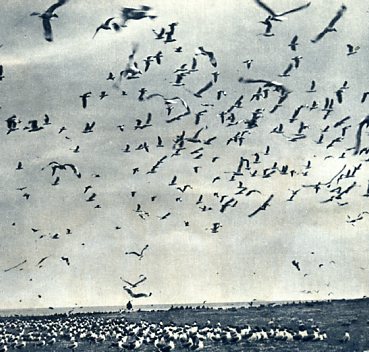 青海省青海湖的西部,有一个形状象蝌蚪、长约两公里的小岛,上面鸟类成群,鸟蛋成堆,走中路时一不小心就踏在蛋上了。今年青海省商业厅在湖上建立了国营渔场,有了一批帆船,人们才第一次在夏季来到了岛上。现在商业厅已派人从岛上拾回七千多个大雁蛋,中国科学院动物研究所青海工作站也捉回几十只小雁来饲养。