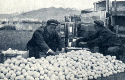 青海省用安2型飞机满载桦、云杉等树种在积雪的荒山上撒种造林。