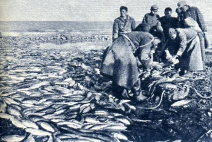 青海省的青海湖是我国最大的咸水湖,水面拔海3千米以上。据初步调查,湖里的鱼,如果不把繁殖量计算在内,每年捕捞5万吨,可以捕捉40多年。解放前由于人少,从未捕捉过;今年这里建立了几个国营渔场,人民公社也组织了捕鱼队。