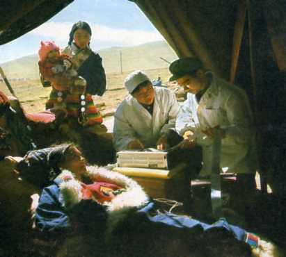 青海高山病防治研究队,深入牧民帐房,进行调查研究。