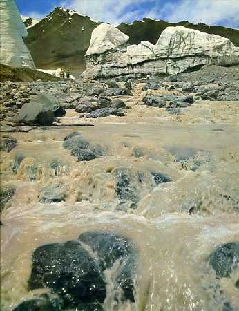 在冰川、河流、湖泊附近分别生长着雪莲及其它各种高原植物。