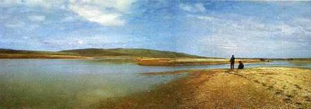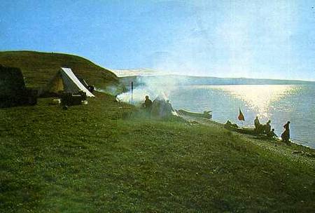 这次考察队在鄂陵湖上新发现的鸟岛。