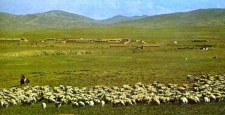 黄河源头地区水草丰盛,自古以来就是我国良好的高山牧场之一。这是座落在卡日曲和约古宗列曲之间的曲麻来县麻多公社。