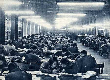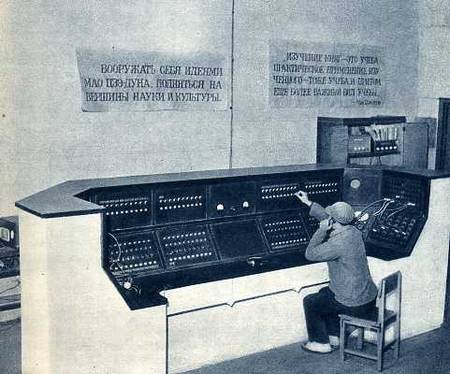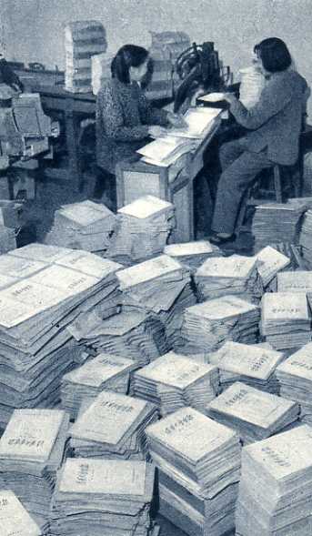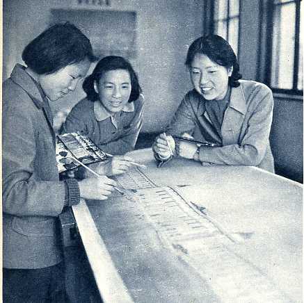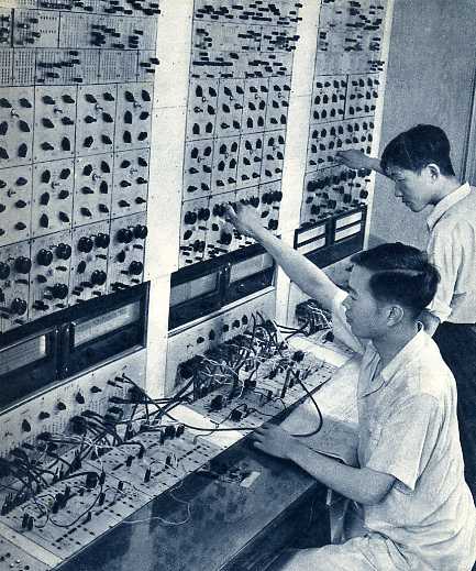 电机工程系学生运用学校自制200周波交流计算台进行华北电力系统运行方案计算。