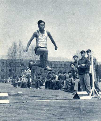 我校学生运动员胡方纲参加1959年全国分区田径运动会,以三级跳远15.38米的成绩达到运动健将标准。