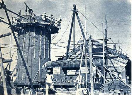 1958年,动力机械、电机工程、土木建筑等系与校外协作,在校内建成2,000千瓦试验电厂。图为电厂正在施工中。