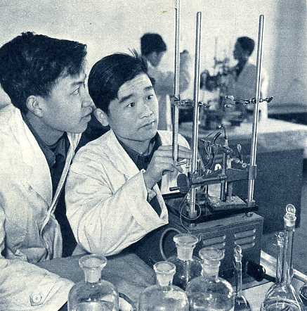 工程化学系工农学生在教师指导下进行物理化学分析实验。