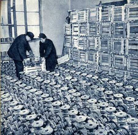 我校师生工人在1958年结合实习生产的水泵,正装箱运往农村支援抗旱斗争。
