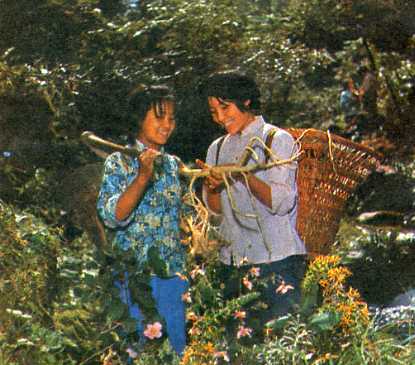 双坪药材场的青年药农在深山采挖党参。(1979年)