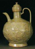 (北宋)耀州窑—青釉印刻牡丹纹连盖把壶