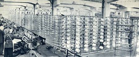 “纺织城”新建的国棉四厂细纱车间,拥有10万纱锭。厂里的工人有的来自上海等地,有的是本地的农村姑娘。