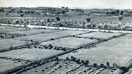 在长城外沙漠深处的榆林县马合人民公社岔河则大队,造林治沙后,水稻获得大面积丰收。
