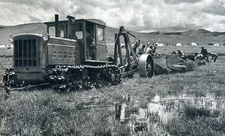 开沟犁在改造沼泽地。