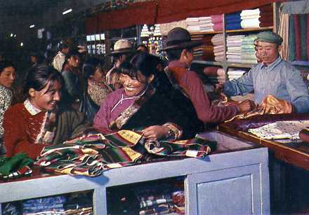 藏族社员在民族贸易公司选购自己喜爱的商品。