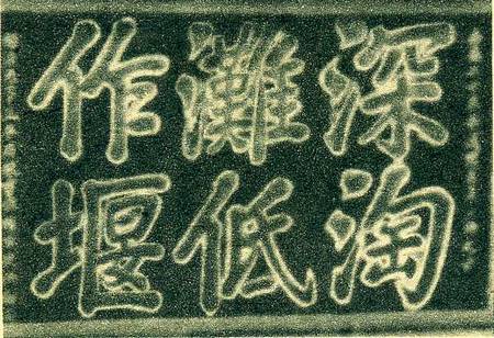 早年1450多年前,川西平原上的劳动人民就总结了都江堰治水的经验,这就是“深淘滩,低作堰”的六字诀。他们把这“六字诀”嵌在二王庙的墙壁上,供后人参考。