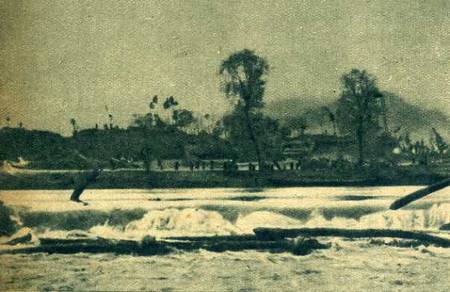 杩槎倒下,水泱泱地流着。“岁修”工程完成后,即砍倒杩槎“开水”。每年“开水”日期:“内江”为3月底至4月初,“外江”为2月初。