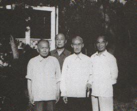 1980年春,罗历戎与部分黄埔校友在北戴河合影。左起:赵子立、罗历戎、方靖、杨伯涛。