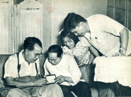 朝鲜人民访华代表团的团员来到四川慰问英雄的母亲黄妈妈。