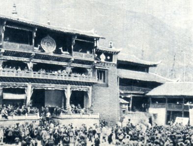 今年5月15日,四川康定跑马山下举了一年一度的“转山会”,非常热闹。“转山会”是藏族人民传统的宗教和文化节日,据说是为了纪念释迦牟尼的诞生。这一天,藏族人民都盛装艳服地转山游览。(1959年)