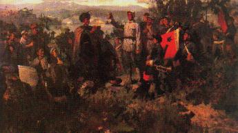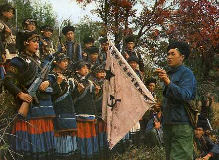 长征中的真实图画《彝族向导》黄镇画。《彝族向导》画于通过彝族地区时。红军在湘、桂、黔、滇、川等地行军时,通过许多少数民族地区,接触了苗、瑶、壮、彝、藏等兄弟民族。正是党的正确的民族政策,红军严明的纪律,和耐心细致的工作,才击破了由历代统治者所造成的民族之间的隔阂和猜忌,少数民族人民也有史以来才看到一支把他们作为自己人的军队—红军。