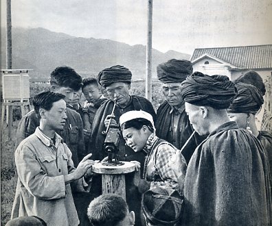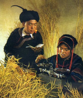 昭觉农业科学研究所的彝族工作人员在测定油菜丰产的产量。