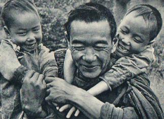 1962年,结石巴扎的一对女儿扑在他肩上时拍的照片。