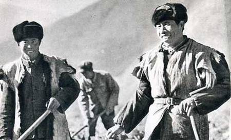 各县都有了电影放映队,这是彝族放映员曲木立古尼(左)、鲁直格(中)和吉克。