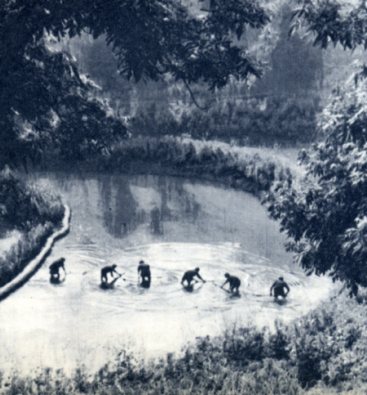 沪县沪锋农业社的社员在平整秧田,准备播种双季稻。(1957年)