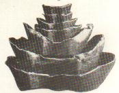 银锭。九胜山明墓出土。1955年春季,洪雅县北门外红星乡北农村的农民在修筑堰沟挖取一块石板时,发现下面藏有银锭128个。银锭墓在县城北面一里许的九胜山麓,远处可见峨眉山的轮廓,墓后的九胜山仅高百余米。在此山麓地带,古代和近代的墓葬甚多,大都为张姓。过去墓前曾立有石碑,顶为圆形。墓主张鹏,明弘治十八年登顾鼎臣榜进士,曾任山西巡抚,谪漳州知府,死于任上。这些银锭上所记县名有龙溪、龙岩、长泰、南靖、漳平、平和等。查明史地理志,这些县都是属于漳州府的。