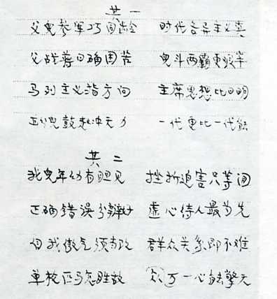 一九七四年,罗瑞卿同志送子参军《示儿》诗四首。这是其中两首的手迹。
