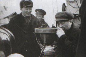 1953年冬,公安部长罗瑞卿陪同毛泽东主席视察东海舰队。