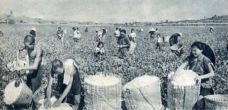 全省棉花又获丰收。简阳县解放农业社的2630亩棉田收获了17万斤棉花。(1957年)