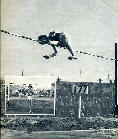 女运动员郑凤荣1957年11月17日在北京市田径运动会上跳动过一公尺七十七公分的高度,打破了美国黑人运动员麦克丹尼尔保持的一公尺七十六公分的女子跳高世界纪录。这个高度比她本人还高七公分。由于刻苦锻炼,一年来她的成绩提高得很快。下面是她近年来的跳高纪录:1953年(1.36公尺)、1956年(1.61公尺)、1957年8月(1.72公尺)、1957年10月(1.73公尺)、1957年11月3日(1.75公尺)、1975年11月17日(1.77公尺)。