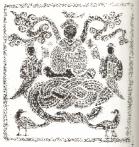 西王母画像石拓本。微山县两城出土。画像石纵67厘米、横56.5厘米。