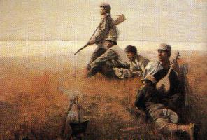 油画《微山湖畔》李晓刚绘