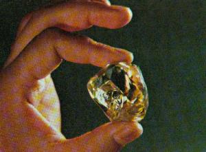 1977年12月,临沭县岌山公社常林大队女社员魏振芳在田间深翻地时发现一颗大金刚石。同全家商定后,决定将它献给国家。这颗金刚石重158.7860克拉,是至今我国发现的最大天然金刚石,在世界上也不多见。它对寻找原生矿以及研究天然金刚石形成的环境等,都有重要意义。这颗金刚石被命名为“常林钻石”。(1978年)