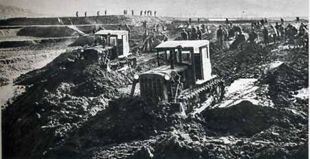 东平县社员改土治水的一个场面。