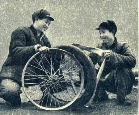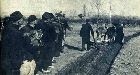 供销社的技术指导员帮助王廷南互助组试用新买来的7寸步犁。