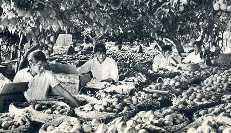 莱阳县清水河南岸陆岗公社的梨园。(1979年)